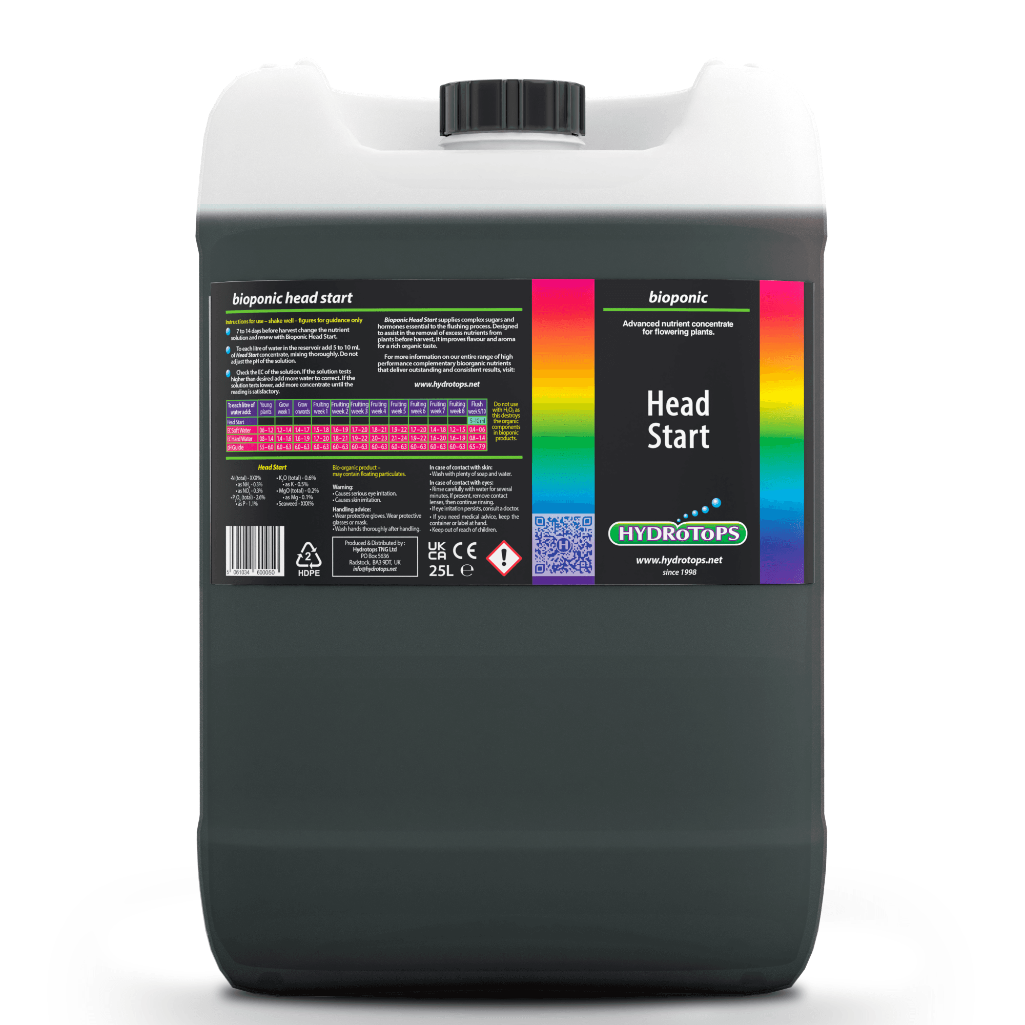 Head Start has been developed to compliment our bioponic and Next Generation nutrient ranges and is designed to give your plants a “head start in life” every time. Using head start, you immediately see a difference in growth and vigour in your plants. Plants grown on head start are prepared to go on and produce abundant foliage and profuse flowers later in the growing cycle. Available as soft water, moderately hard water and hard water formulations for use in hydroponic, coco and soil growing.